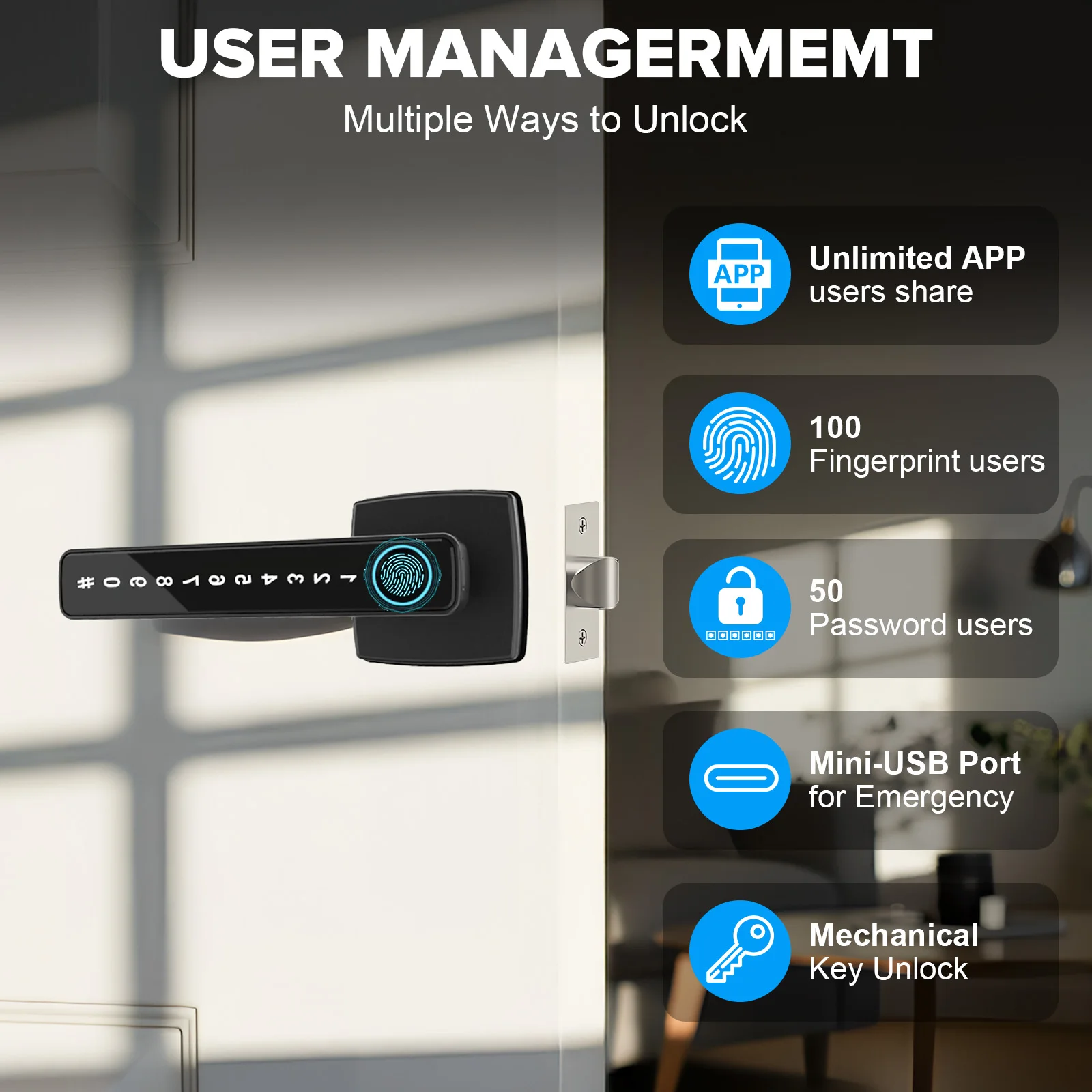 Feature3: Keyless Entry Door Lock for Front Door